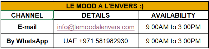 UAE orders are delivered within 1–2 business days while international orders are delivered within 2–5 business days. While Le Mood strives to adhere to this schedule, complete accuracy cannot be guaranteed. - I received my order missing an item. What can I do?